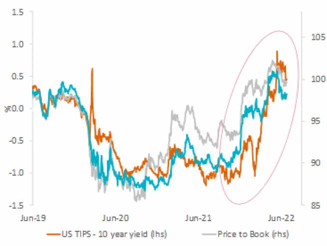 Im Faktor Value waren wir im Januar übergewichtet und haben daran auch nach dem Kriegsausbruch nichts geändert. Der Grund dafür war, dass steigende Realzinserwartungen gut für Aktien mit niedriger Duration sind und Substanzwerte wohl deutlich unter ihrem fairen Wert notieren und damit billig waren. Mittlerweile sind wir im Faktor Value aber nur noch neutral gewichtet, da die Realzinsen unserer Ansicht nach nicht mehr stark steigen werden. Außerdem hat sich die Bewertungsdifferenz zwischen Substanz- und Wachstumswerten nach dem Mehrertrag von Value in diesem Jahr normalisiert. Noch weiter verringern wir die Gewichtung aber nicht, weil die unsichere Konjunktur- und Weltlage noch immer für defensive Substanzwerte spricht. Value mag zwar nicht mehr günstig sein, ist aber auch nicht wirklich teuer.