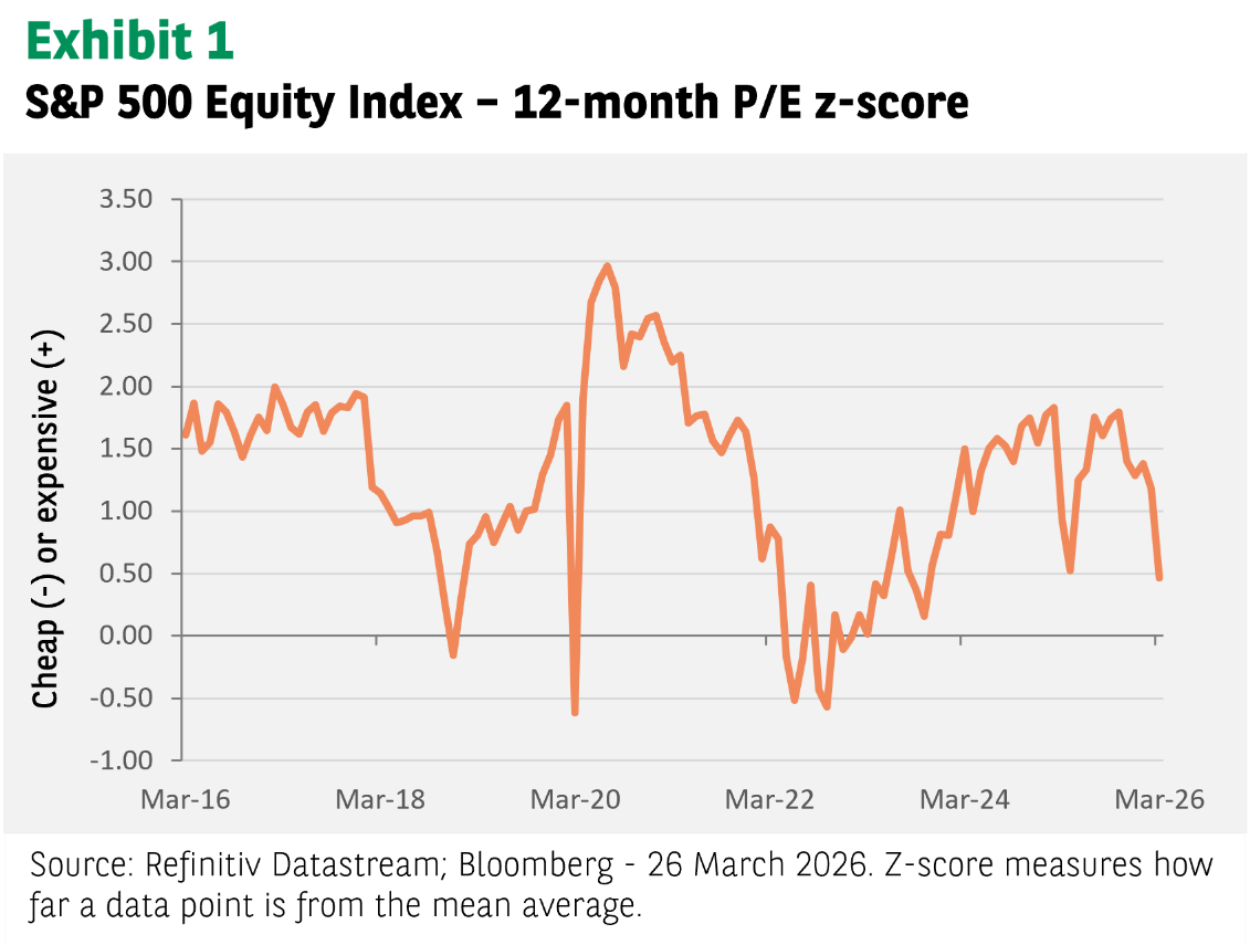 Sind die Märkte schon so stark gefallen, dass sie wieder attraktiv bewertet sind? Wer den Leitzinsausblick für zu pessimistisch hält, könnte trotz der zuletzt recht scharfen Äußerungen der Notenbanken recht behalten. 2026 ist nicht 2022. Damals, nur einen Monat nach Russlands Einmarsch in die Ukraine, begann die Fed bei einem Leitzins von 0,5% mit Zinserhöhungen. Da war die Inflation aber schon auf 8% gestiegen. EZB und Bank of England waren in einer ähnlichen Lage.